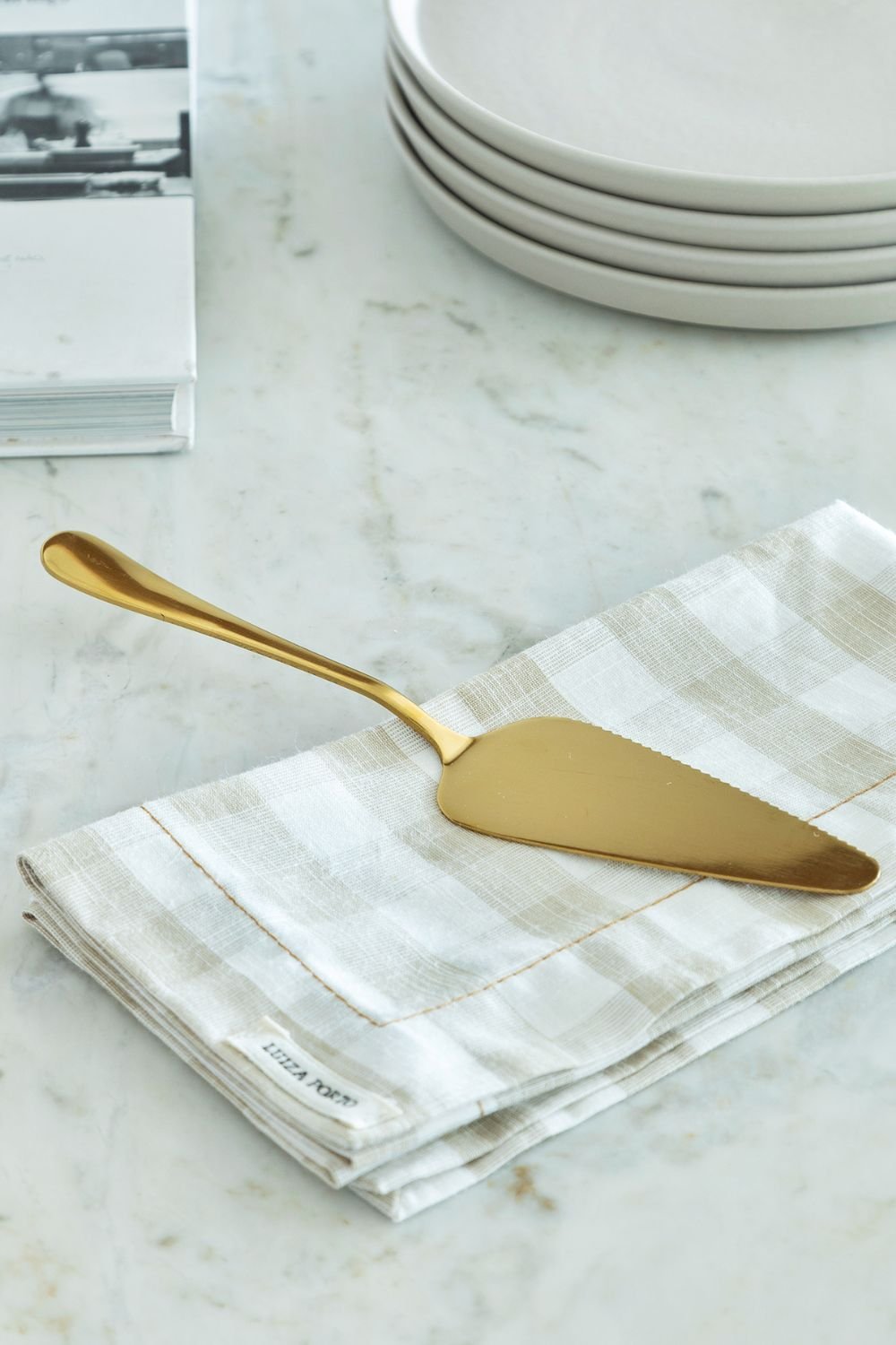 “A espátula dourada traz um toque especial para o momento mais delicioso da refeição: a sobremesa. Eu gosto de usá-la desde o café da manhã até o jantar, para cortar bolos, tortas, quiches e queijos.”