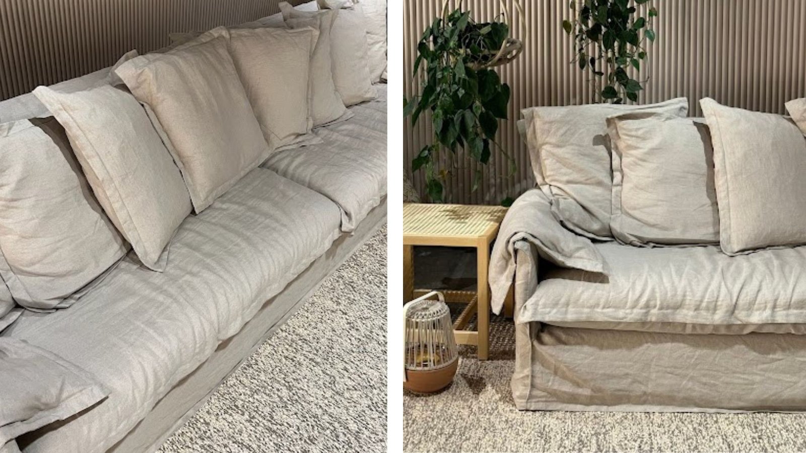 O sofá recebe esse nome pela sobreposição de capas em todos os seus componentes: corpo, assento e almofadas. É um modelo elegante que traz extrema leveza e fluidez ao espaço, além de extremamente confortável — não é à toa que foi o escolhido para a sala da Lu.