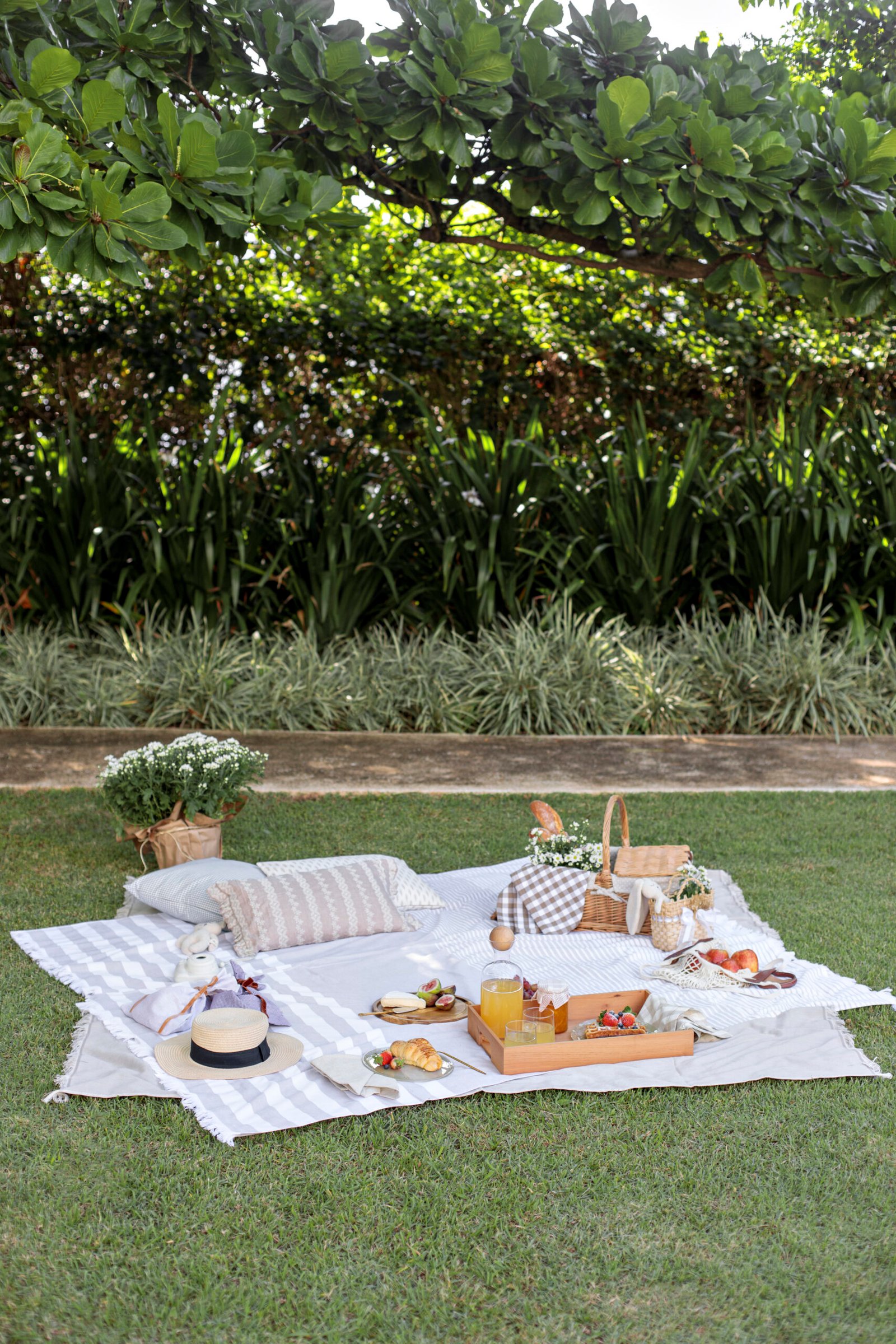 Uma ótima vantagem de um piquenique ao ar livre é que você não precisa de muito para tornar esse momento super especial. Escolha um lugar gostoso ou significativo e use as coisas que você já tem em casa para dar um charme ao cenário.