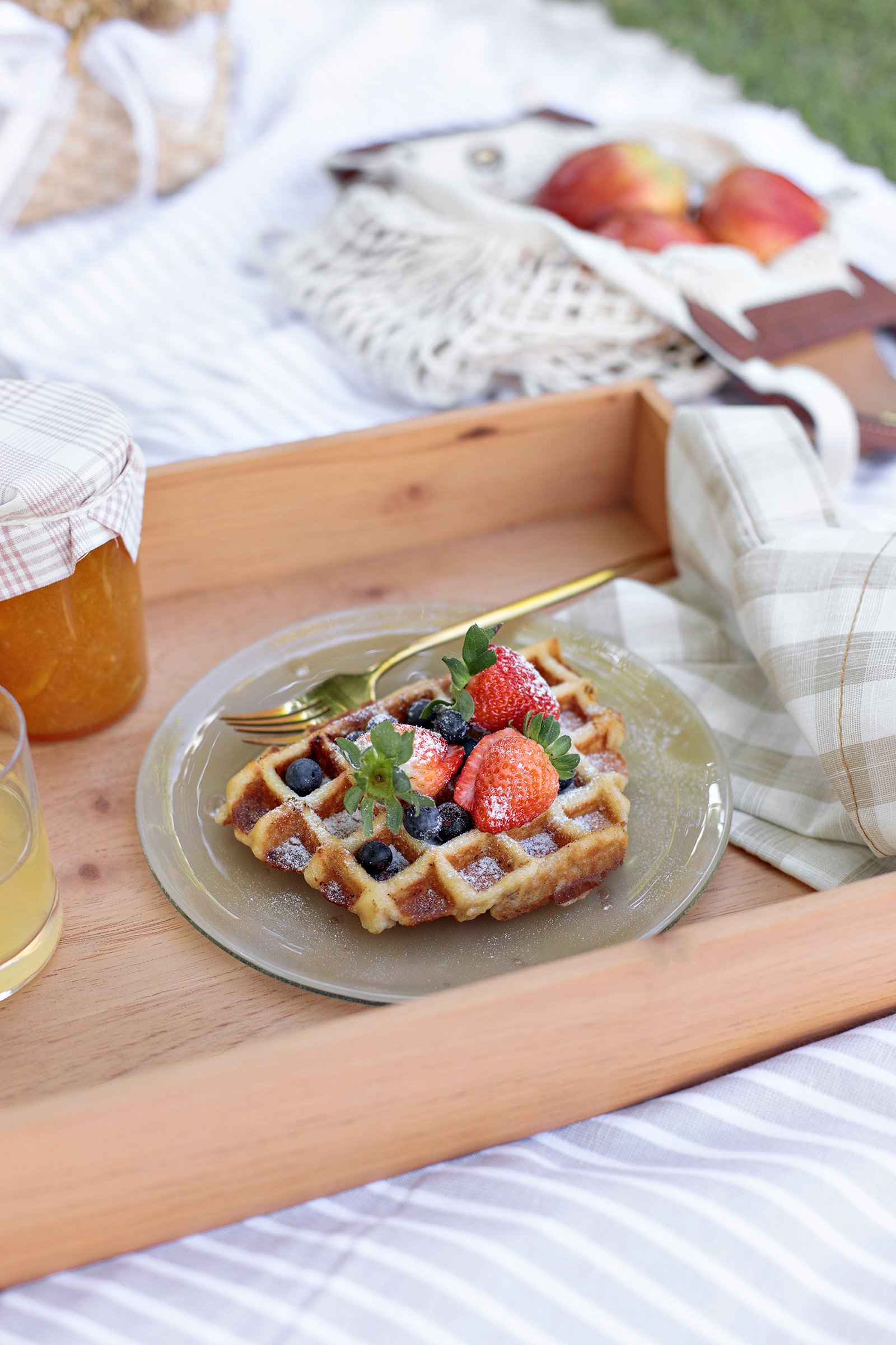 Para o lanche da tarde, preparamos uma receita de waffle, que cobrimos com açúcar de confeiteiro e frutas silvestres – super fácil, gostosa e linda ao mesmo tempo. Ideal para testar em casa e à prova de erros, os waffles podem também ser cobertos com calda de chocolate, doce de leite ou geléia de frutas, como você desejar: